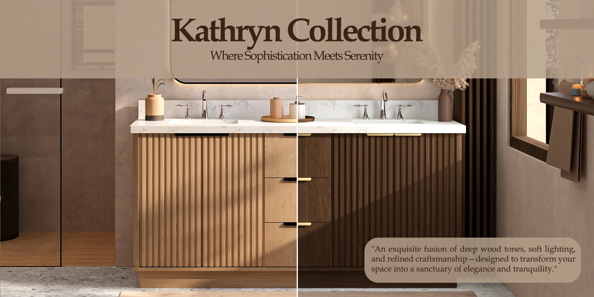 Kathryn 60" Double Vanity Cabinet with Square Sinks and Statuario Venato Marble Quartz Top in Dark Oak