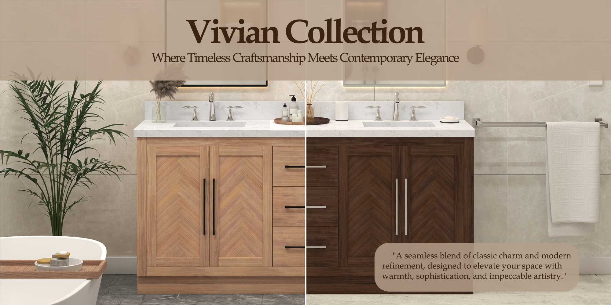 Vivian 72" Double Vanity with Square Sinks and Statuario Venato Marble Quartz Top in Dark Oak