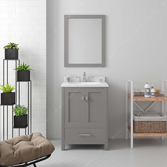 Caroline Avenue 24" Single Bath Vanity in Gray with White Quartz Top and Round Sink
