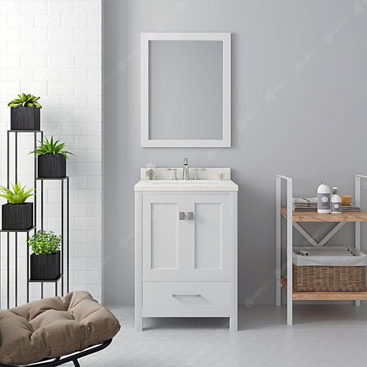 Caroline Avenue 24" Single Bath Vanity in White with White Quartz Top and Square Sink