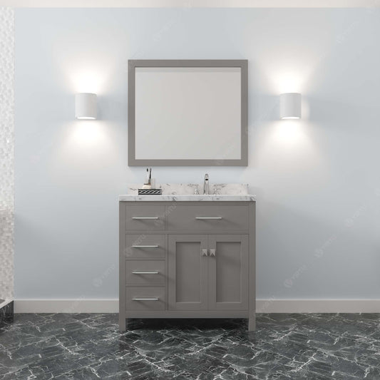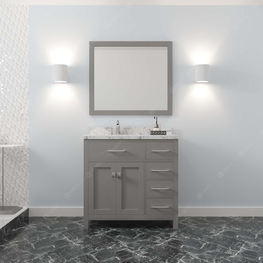 Caroline Parkway 36" Right Single Bath Vanity in Gray with White Quartz Top and Square Sink