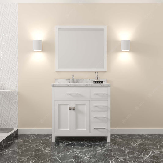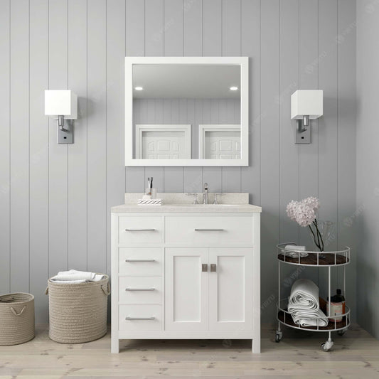 Caroline Parkway 36" Right Single Bath Vanity in White with White Quartz Top and Round Sink