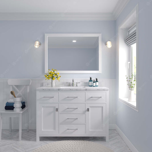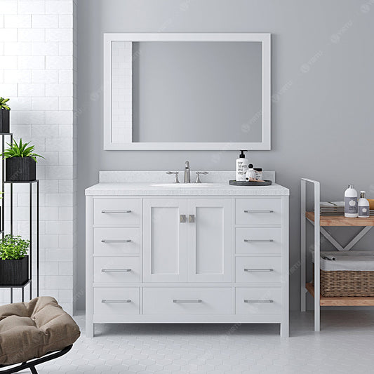 Caroline 48" Single Bath Vanity in White with White Quartz Top and Square Sink