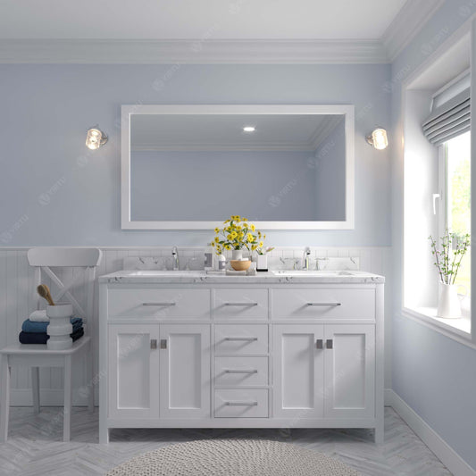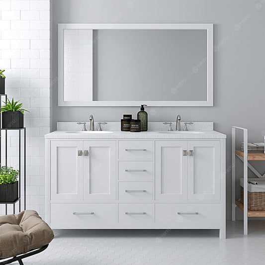 Caroline 60" Double Bath Vanity in White with Cultured Marble Quartz Top and Square Sinks