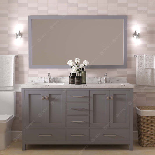 Caroline 60" Double Bath Vanity in Gray with Cultured Marble Quartz Top and Square Sinks