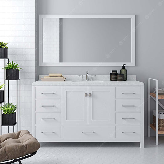 Caroline 60" Single Bath Vanity in White with Cultured Marble Quartz Top and Square Sink