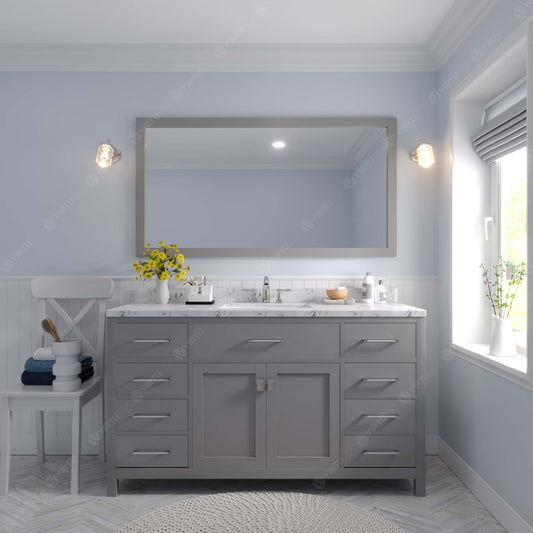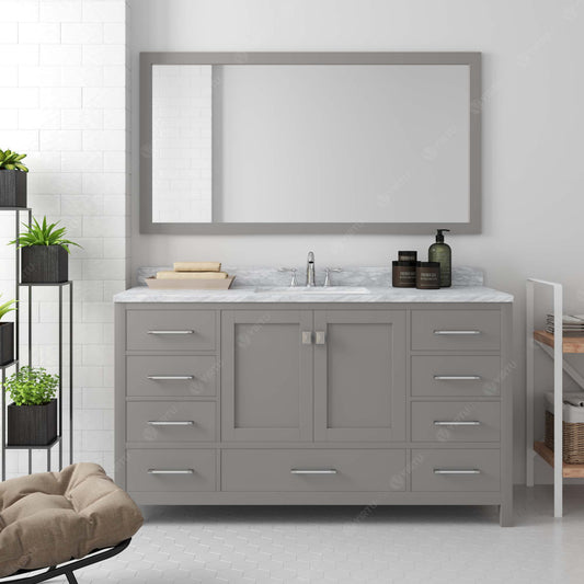 Caroline Avenue 60" Single Bath Vanity in Gray with White Marble Top and Square Sink