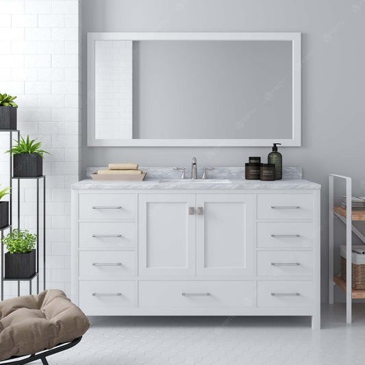 Caroline Avenue 60" Single Bath Vanity in White with White Marble Top and Square Sink
