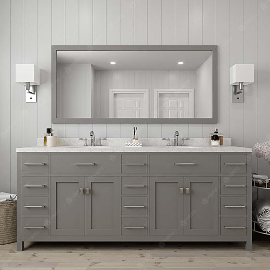 Caroline Parkway 78" Double Bath Vanity in Gray with White Quartz Top and Square Sinks