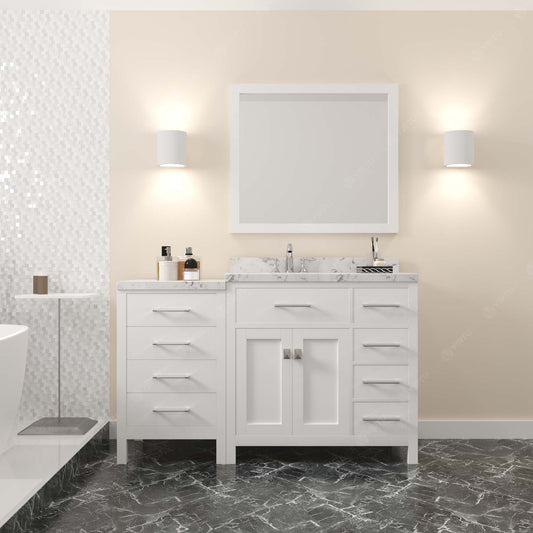 Caroline Parkway 57" Right Single Bath Vanity in White with White Quartz Top and Square Sink