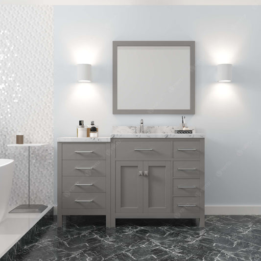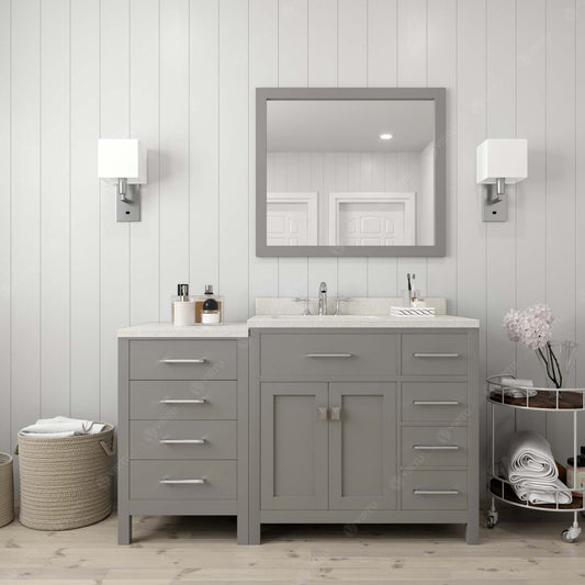 Caroline Parkway 57" Right Single Bath Vanity in Gray with White Quartz Top and Square Sink