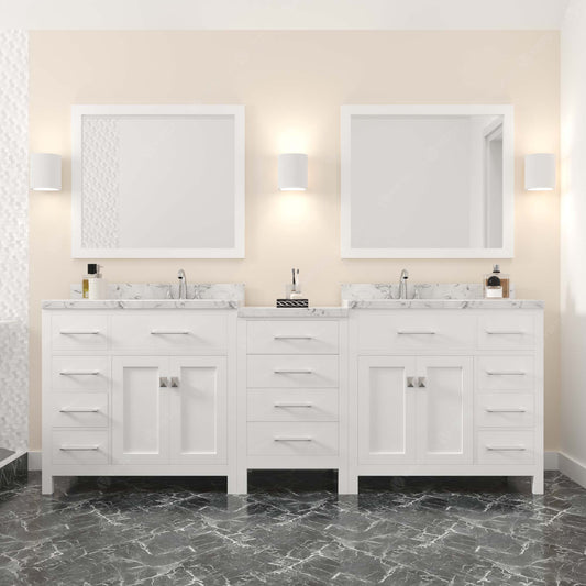 The Caroline Parkway Vanity Collection showcases subtle sophistication, adding beauty and charm to any space. With its contemporary shaker-style doors and sleek, clean lines, it complements both modern and transitional interiors while offering generous storage for everyday essentials. Its modular design is visually striking and exceptionally versatile. Enhanced with soft-closing hinges and drawer glides, it delivers an elevated touch of luxury, safety, and durability. Each vanity is meticulously handcrafted with a solid 2" birch wood frame, built for lasting strength and timeless appeal.