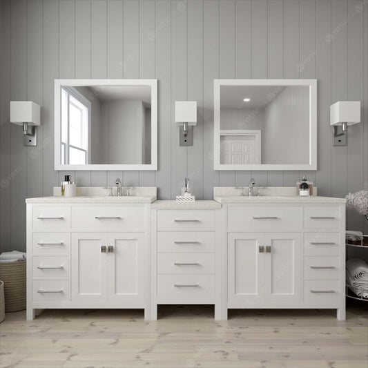 Caroline Parkway 93" Double Bath Vanity in White with White Quartz Top and Round Sinks