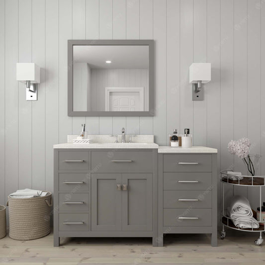 Caroline Parkway 57" Left Single Bath Vanity in Gray with White Quartz Top and Round Sink