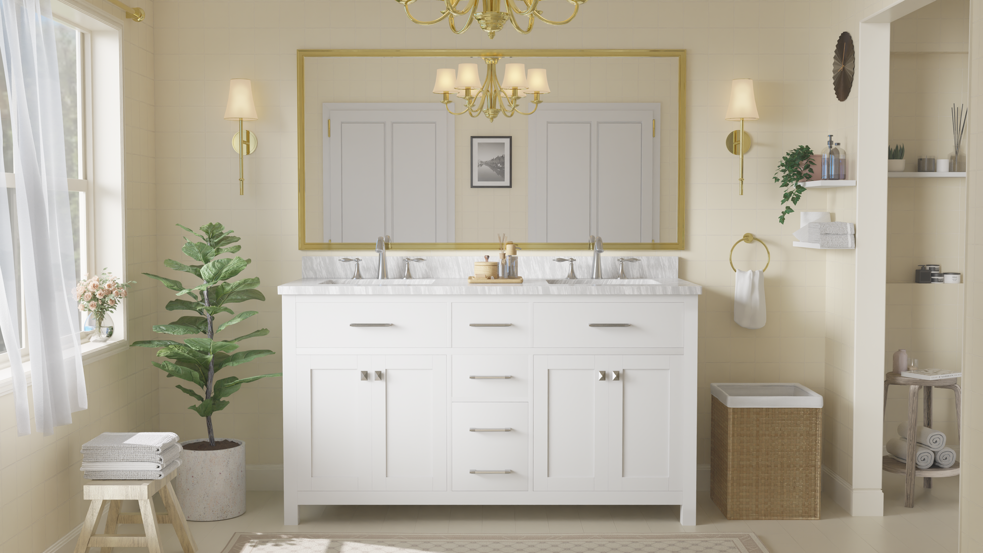 and longevity. Each Caroline vanity is handcrafted with a 2" solid wood birch frame built to last a lifetime.