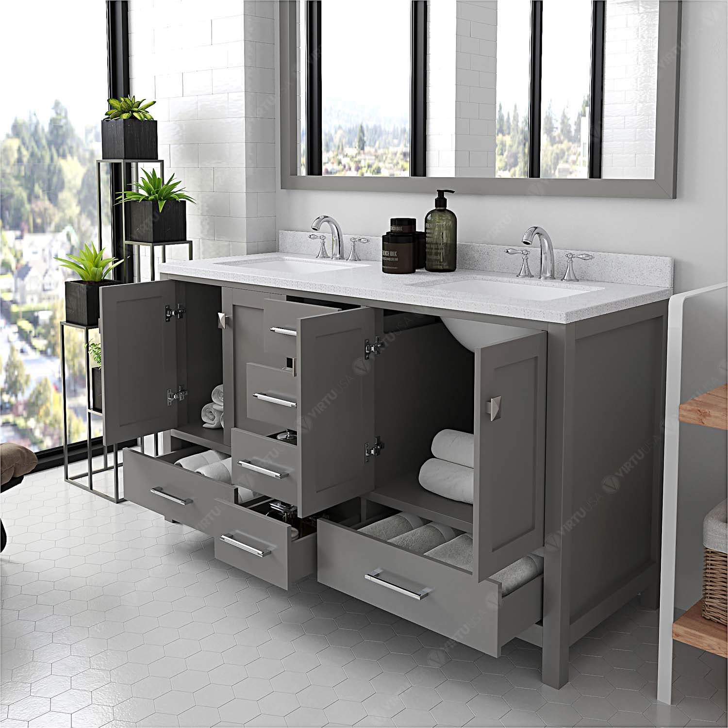 Caroline Avenue 60" Double Bath Vanity in Gray with White Quartz Top and Square Sinks
