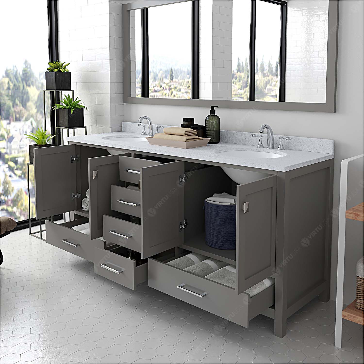 - Functional & Versatile - Soft-closing door hinges and drawer glides provide added luxury, safety, and longevity. Each Caroline Avenue vanity is handcrafted with a 2" solid wood birch frame built to last a lifetime.