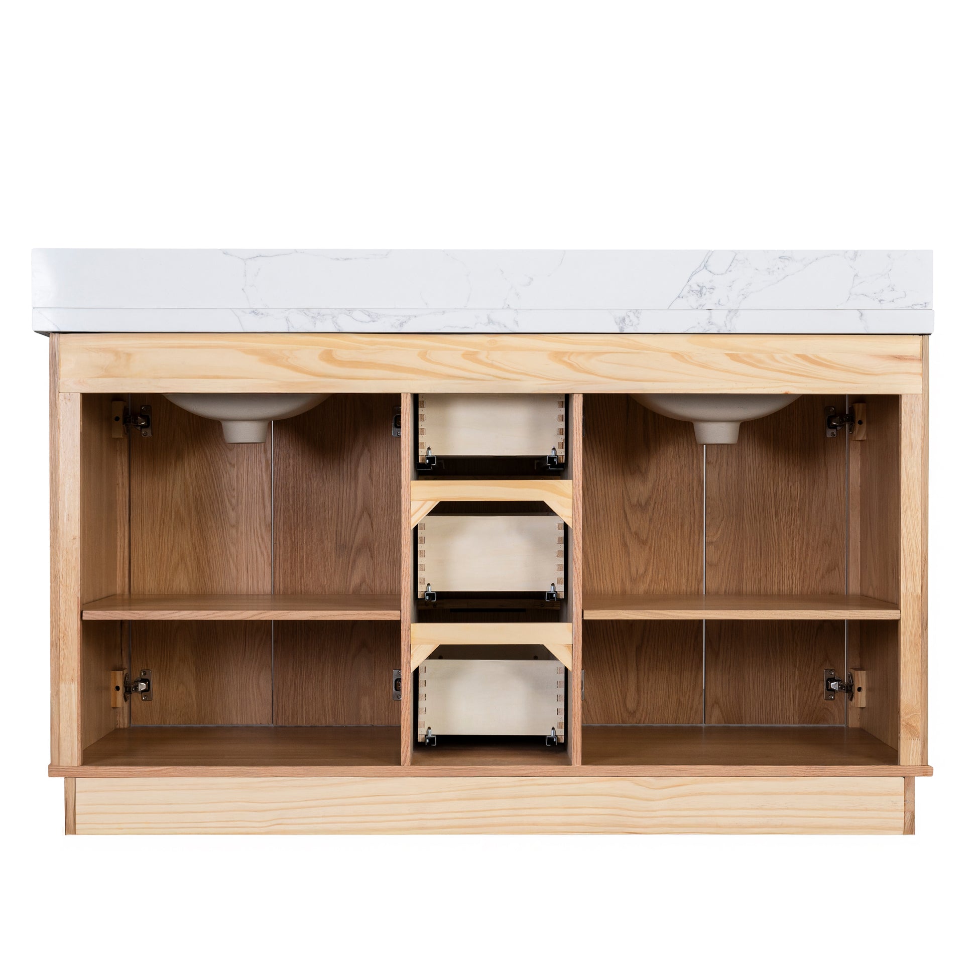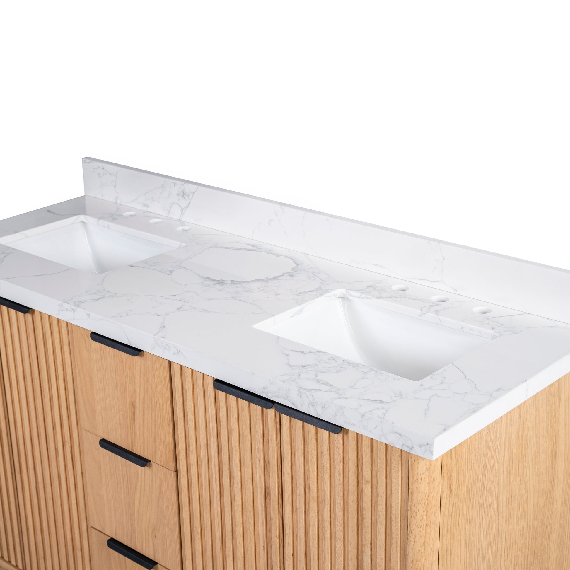 Kathryn 60" Double Vanity Cabinet with Square Sinks and Statuario Venato Marble Quartz Top in Light Oak